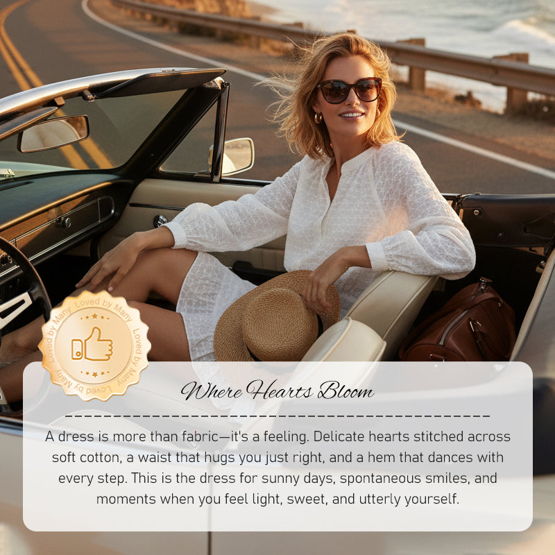 DELICATE HEART EMBROIDERY - This dress features a subtle, all-over heart embroidery, adding a touch of romance and unique texture. It elevates the simple white design into a standout piece that showcases your charming and sweet side.