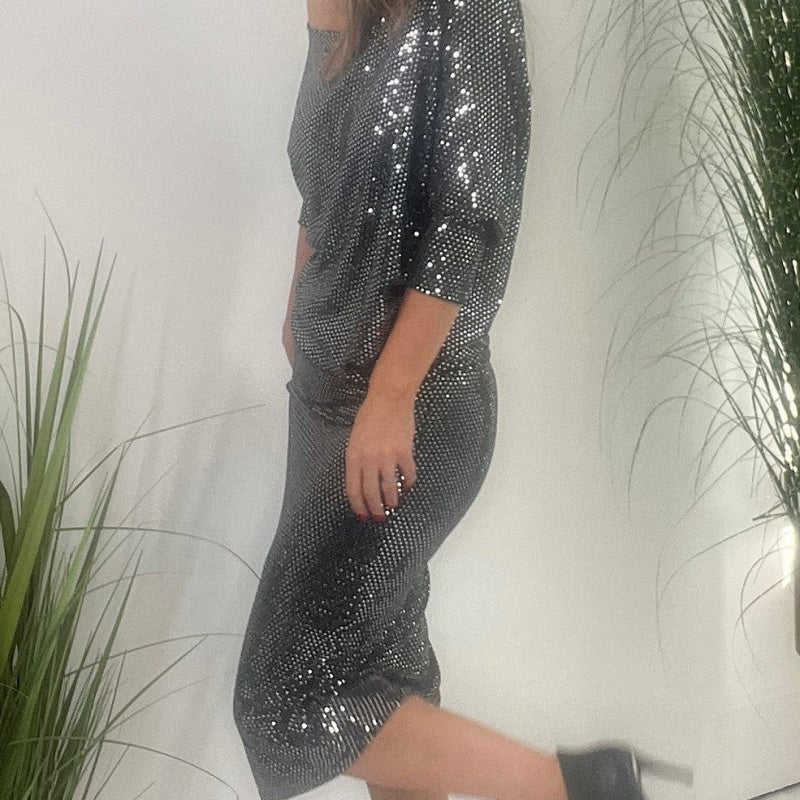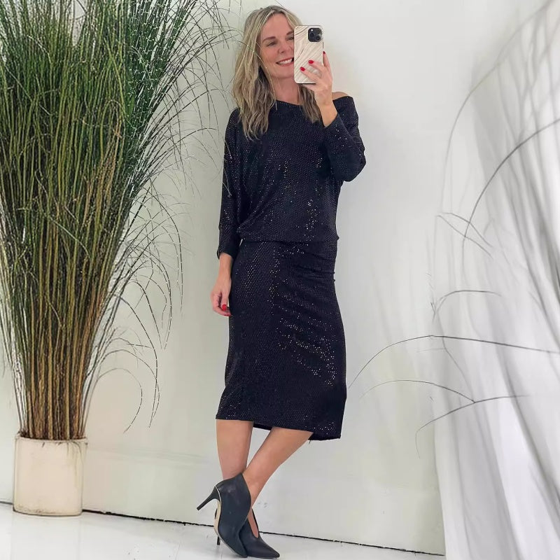 GLAMOROUS SEQUIN DETAILING: This dress is adorned with dazzling sequins that catch the light from every angle, adding a touch of sparkle and glamour perfect for a night out or evening event.